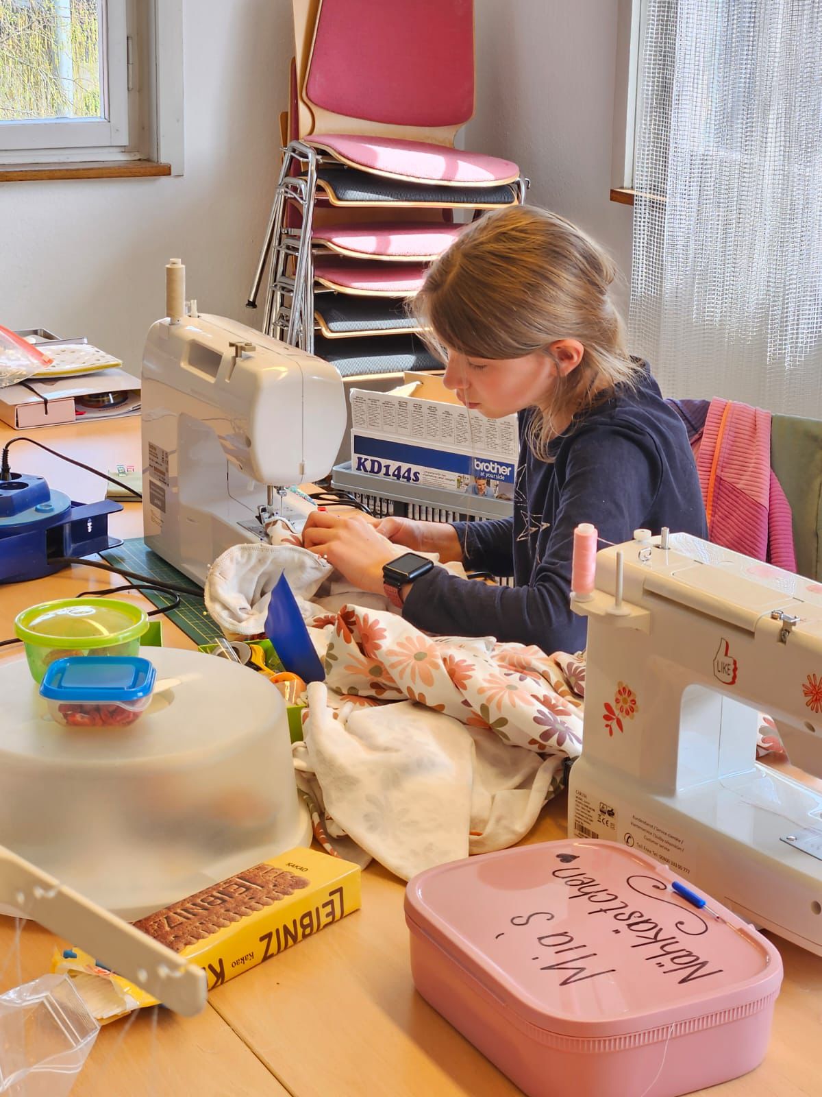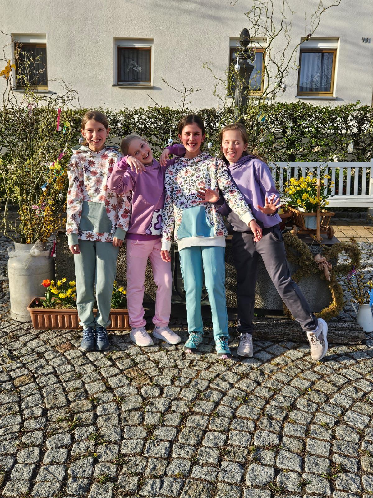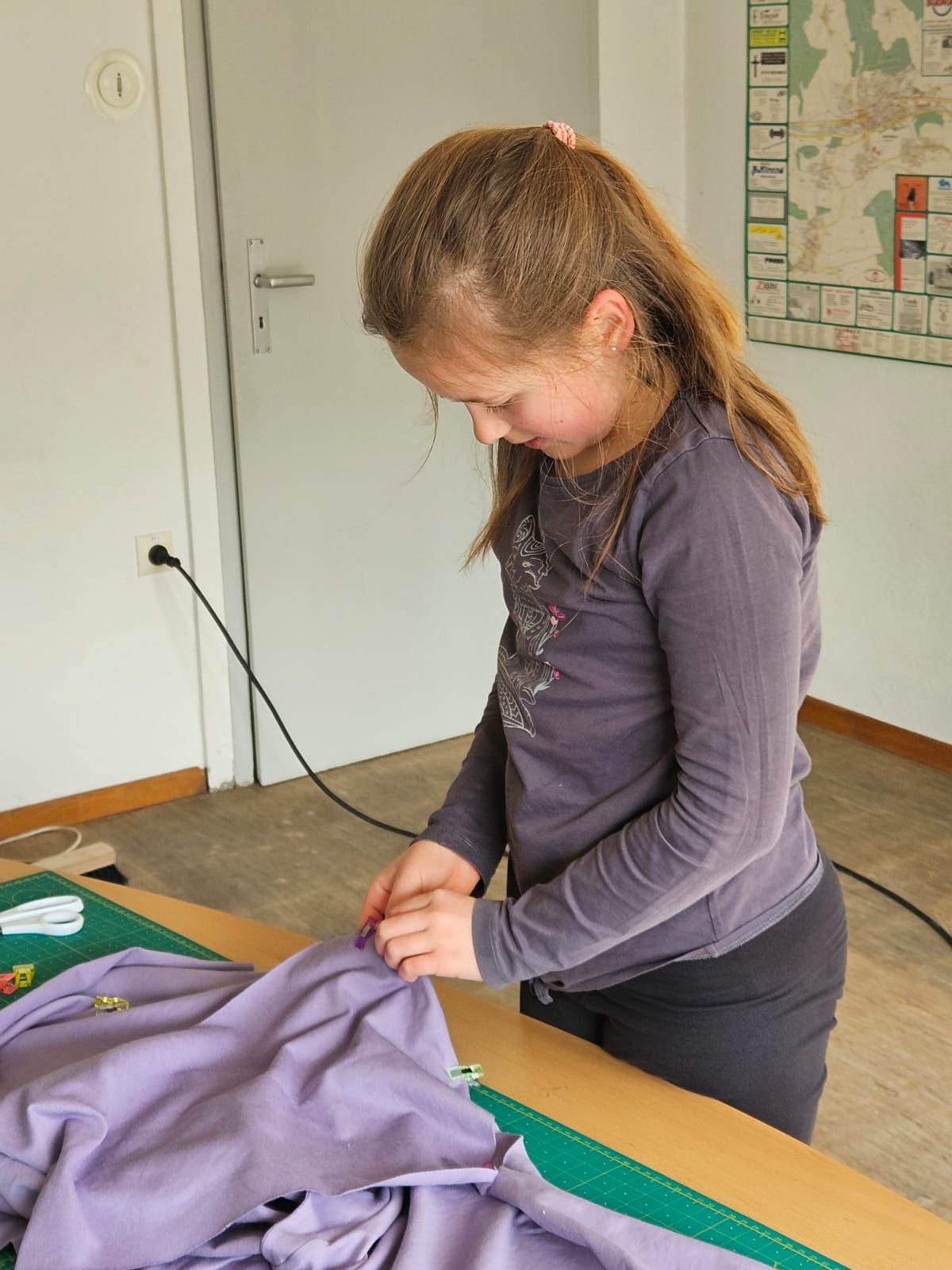 In den Osterferien trafen wir vier Mädels uns gemeinsam mit Dagmar zum Nähen im Alten Rathaus. Unser ausgesuchtes Projekt war ein Jogginganzug mit Kapuzenpulli – ein Vorhaben, auf das wir uns alle sehr gefreut hatten.