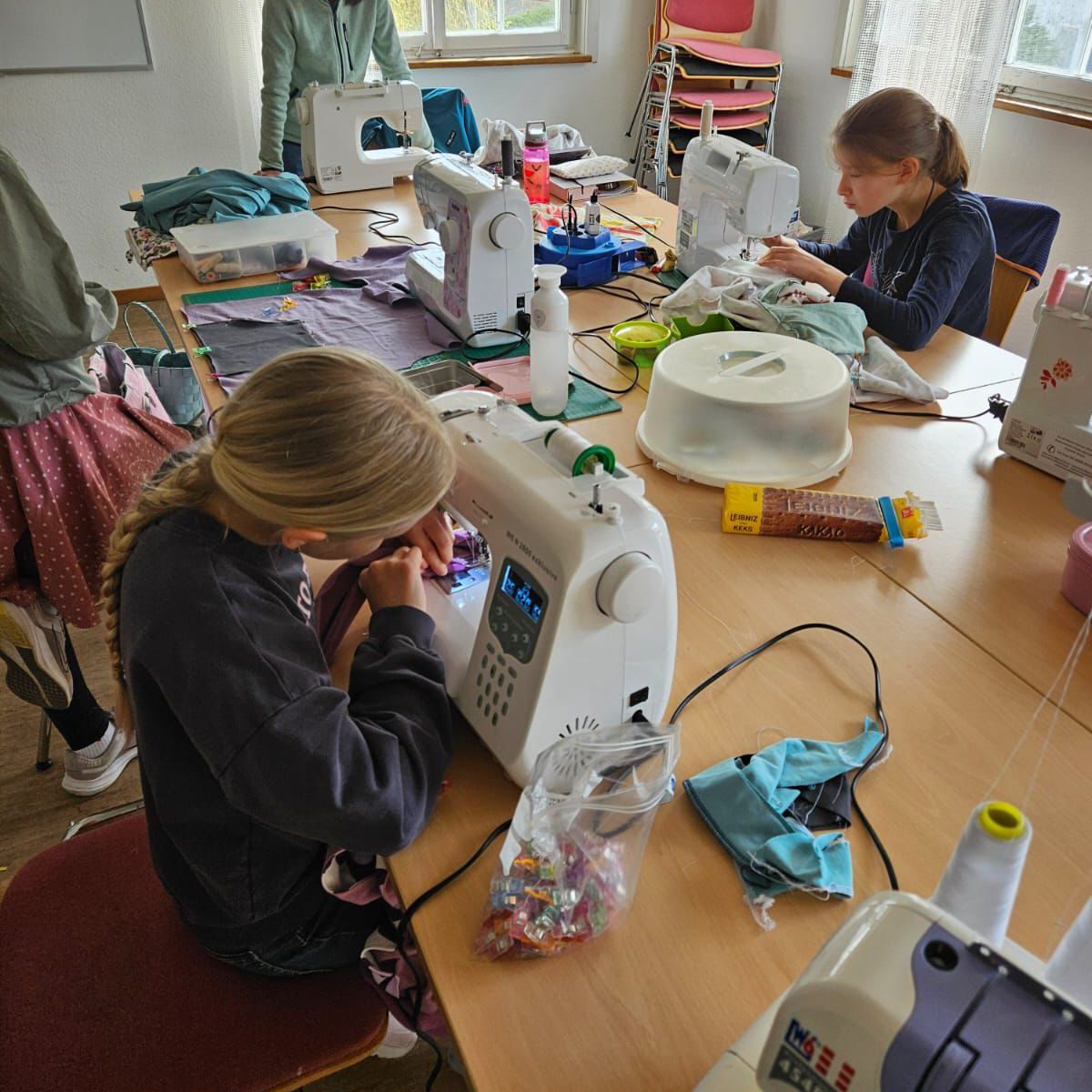 In den Osterferien trafen wir vier Mädels uns gemeinsam mit Dagmar zum Nähen im Alten Rathaus. Unser ausgesuchtes Projekt war ein Jogginganzug mit Kapuzenpulli – ein Vorhaben, auf das wir uns alle sehr gefreut hatten.